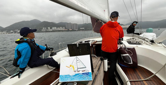 Once safely anchored in Tai Tam Bay — weaving through an enthusiastic wing-foiling contest — the rally transitioned into its creative second act. Brushes replaced winches, and our “Picasseas” and “Van Sails” took to canvas for the drawing competition. With a stunning artistic interpretation of Saphira and Blu sailing through iceberg-dotted waters, Saphira secured victory in this contest as well.