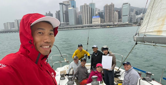 If you arrive start line from the East or South, sail round the Shek O Rock to Port and pass the start line from North to South